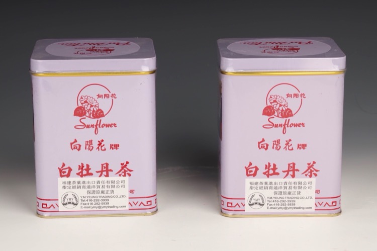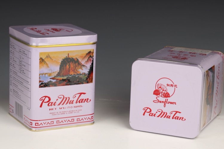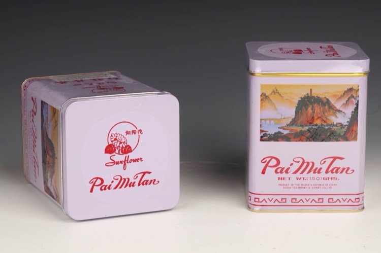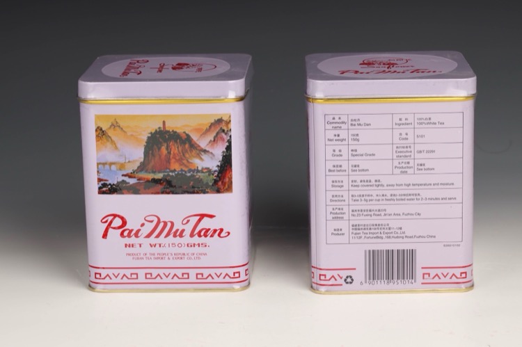 2 tins of Pai Mu Tan tea originally produced by Fujian Tea Import & Export Co., Ltd. (2pcs)