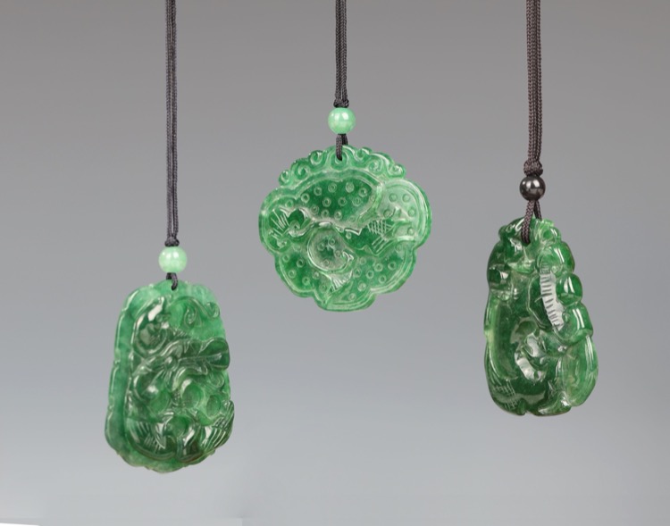 Three finely carved jadeite pendants. (3pcs)