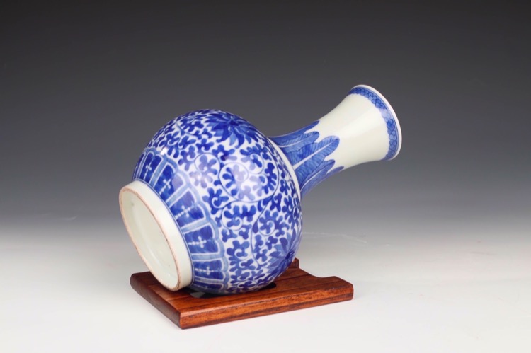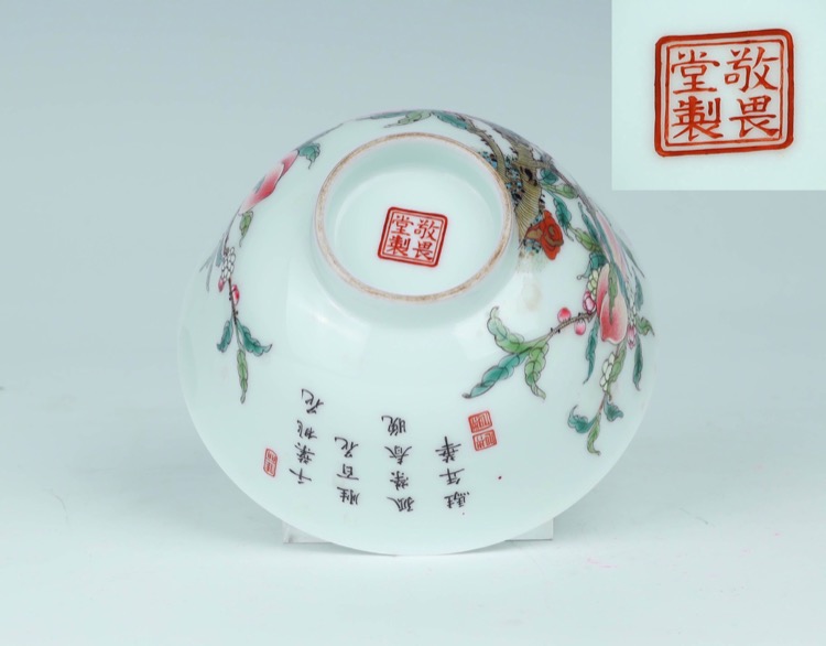 20世紀 青花纏枝蓮紋賞瓶及粉彩壽桃紋碗 敬畏堂製款