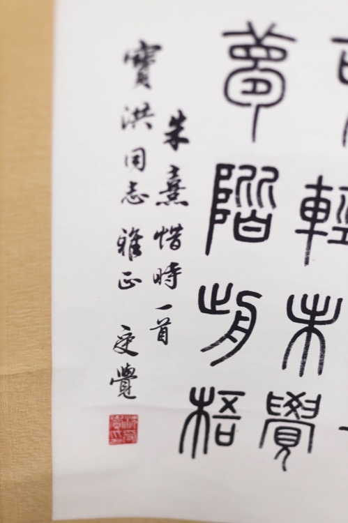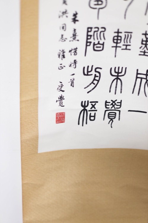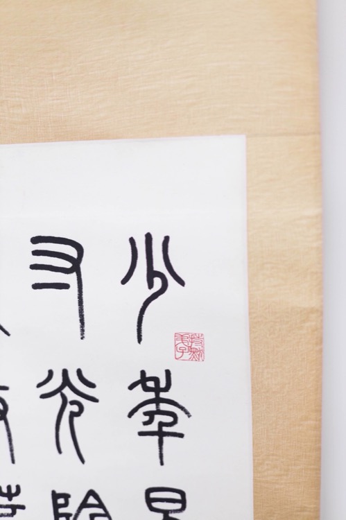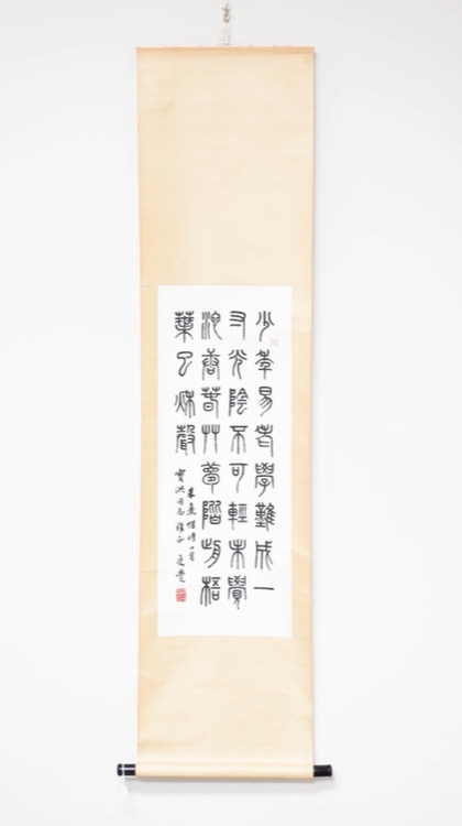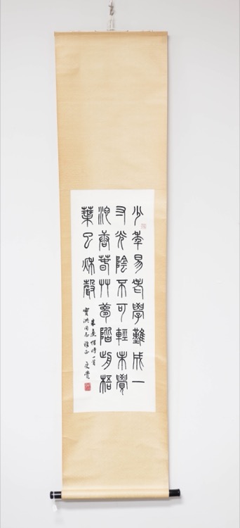 Clerical script calligraphy hanging scroll. Sealed with 2 artist’s seals.