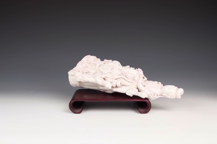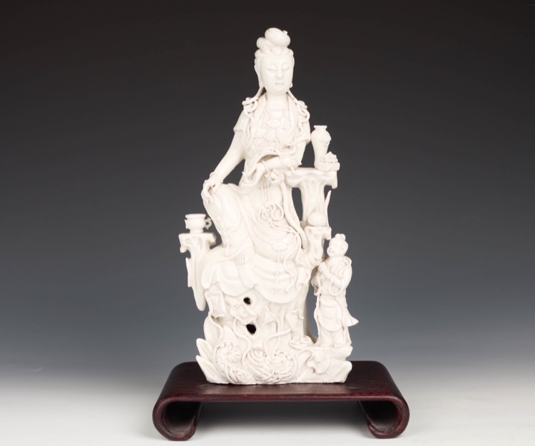 Dehua Blanc De Seated Guanyin Statue with Boy, Qing Dynasty