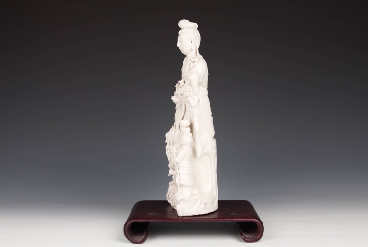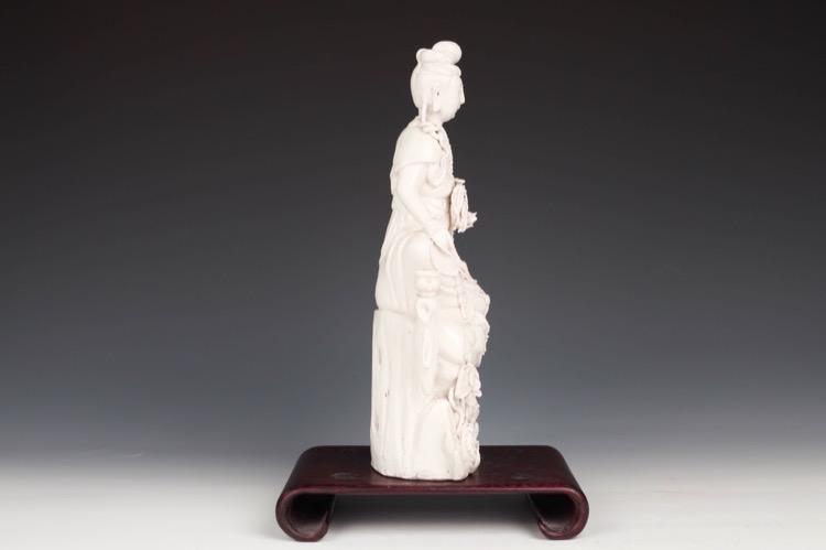 Compare with a Dehua Figure of Guanyin, late Qing dynasty – Republic period, in Christie’s New York Sale15Mar2015, Lot 3720.