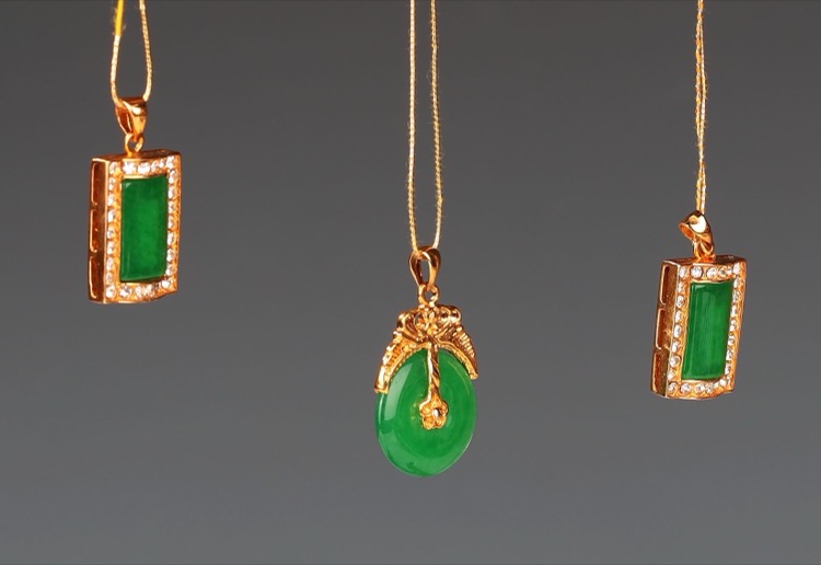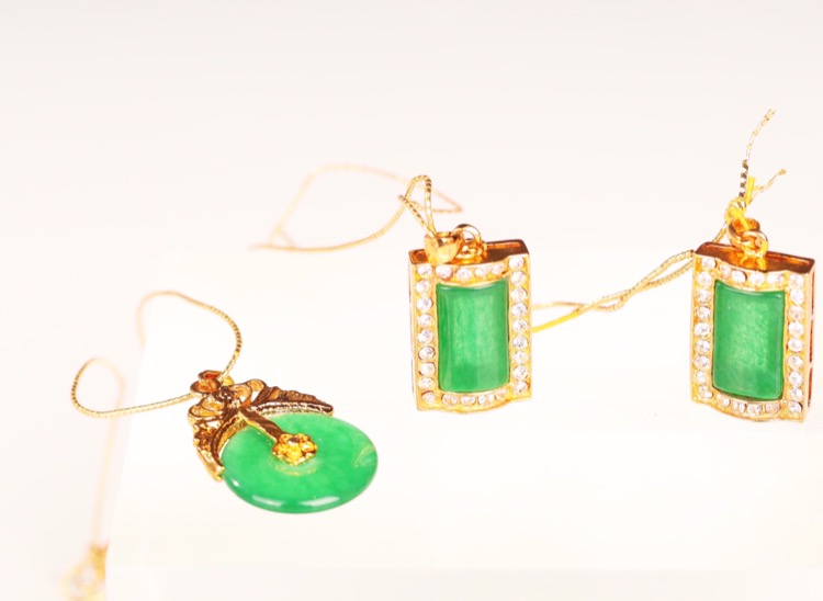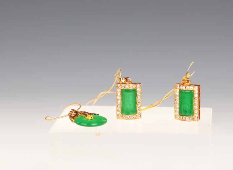 翡翠方牌掛墜一對和平安扣一個