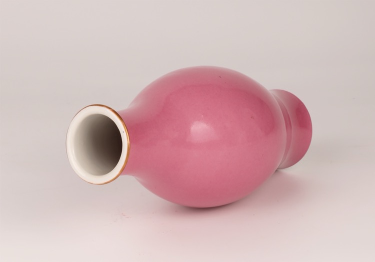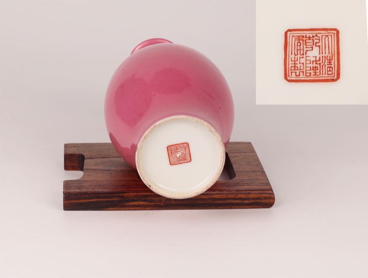 民國 胭脂紅釉橄欖瓶 乾隆款