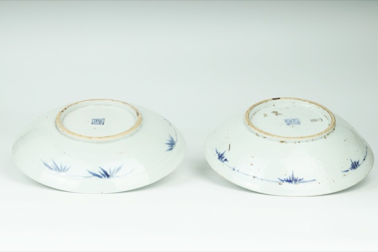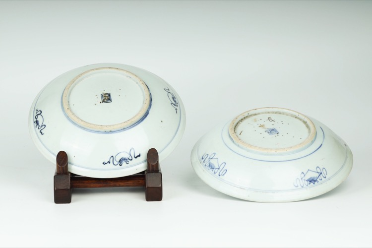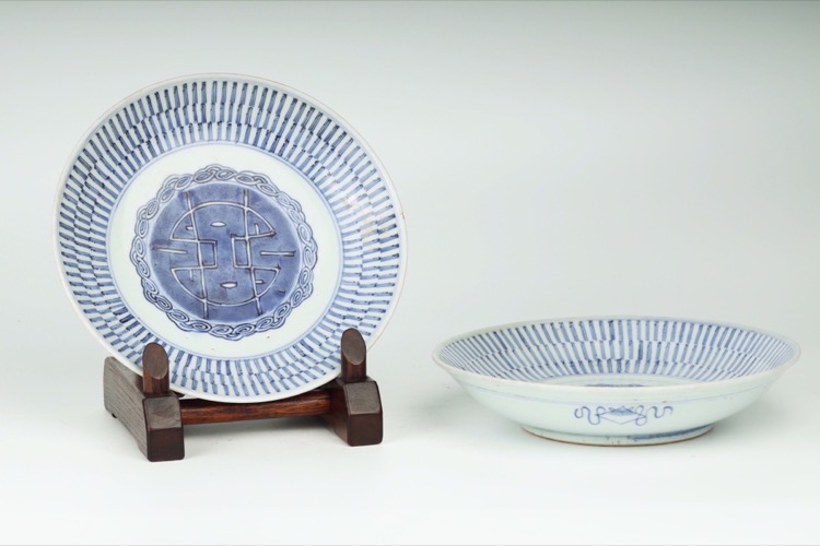 清 青花萬壽紋盤一對