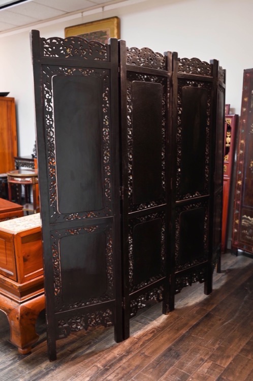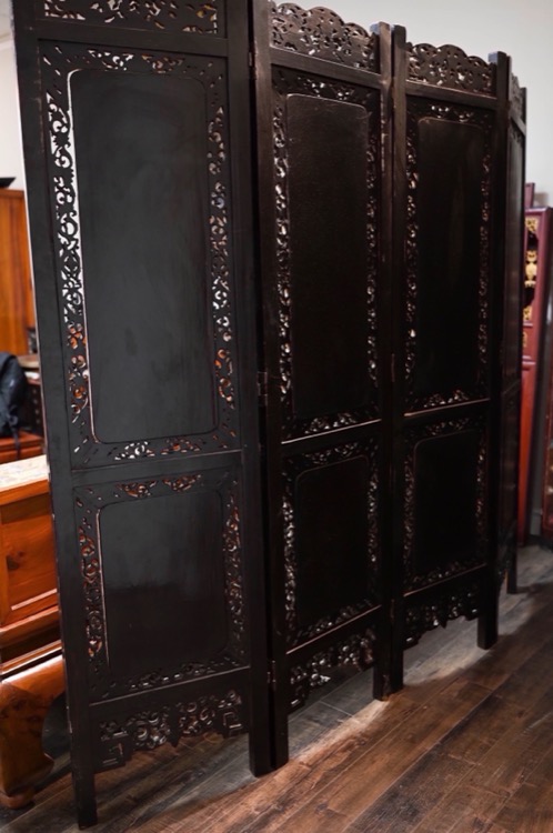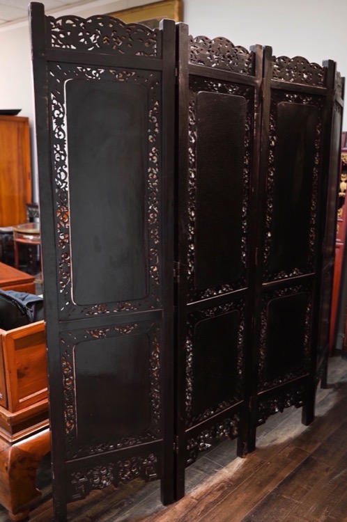 Wood Carved Openwork Four-Leaf Screen