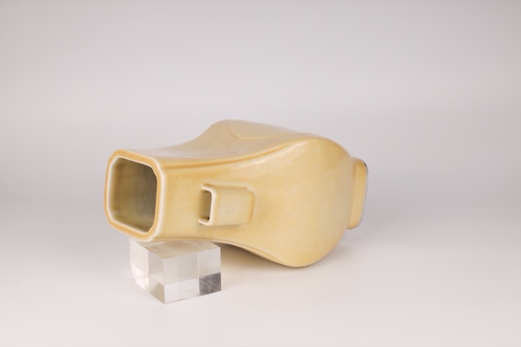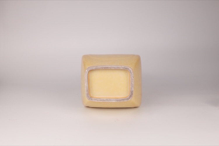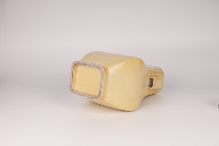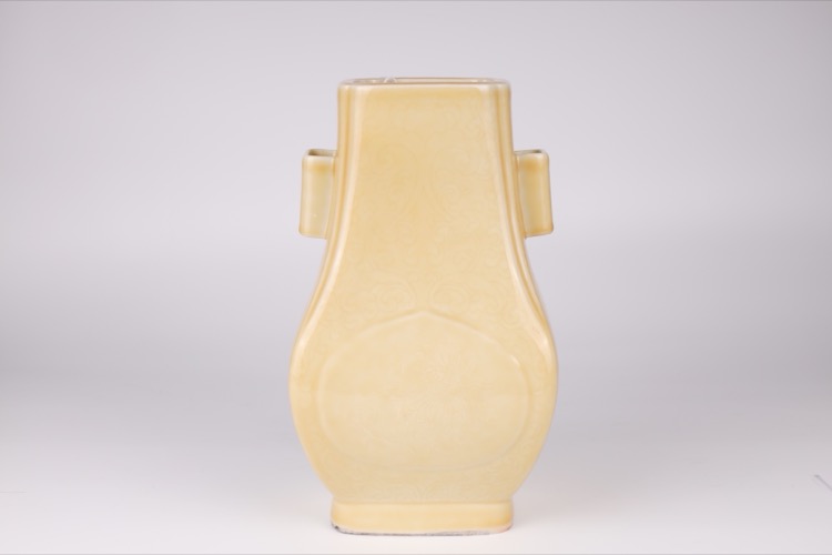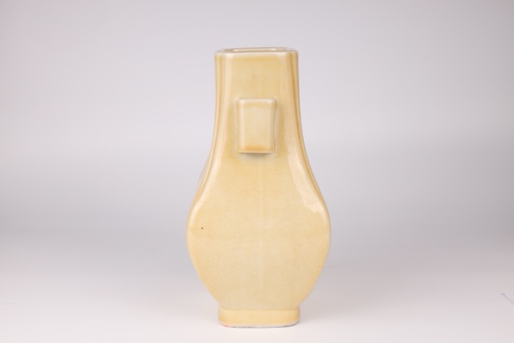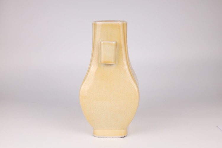 20世紀早期 黃釉暗刻花卉紋四方貫耳瓶