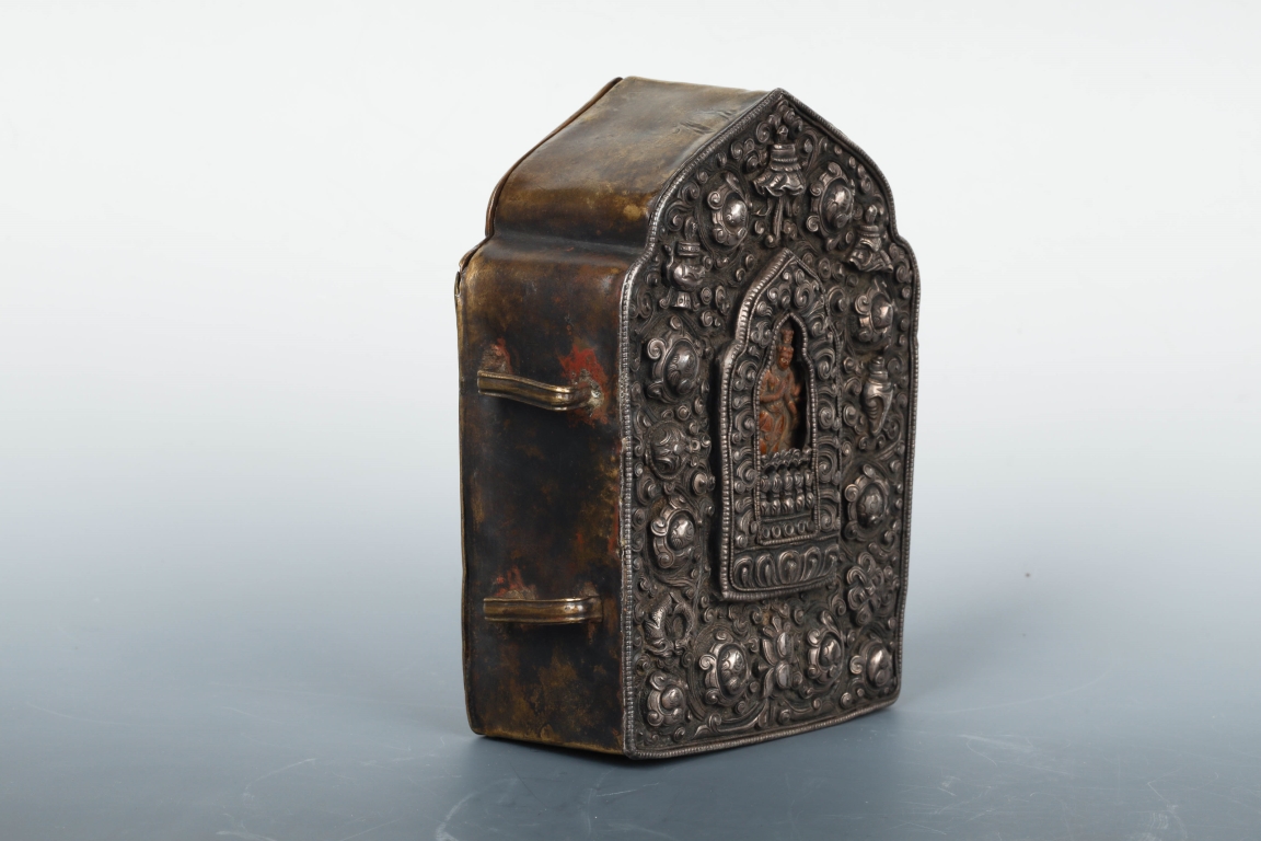 Dimensions: 6″ (15cm) L, 5 1/2″ (14cm) W, 2″ (5cm) H 18世纪藏传神龛#4 Provenance: Ex E.J. Frankel, New York.