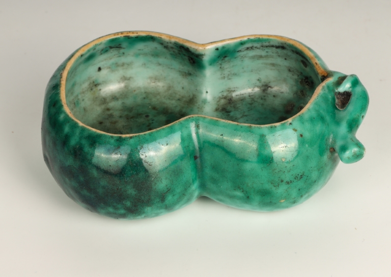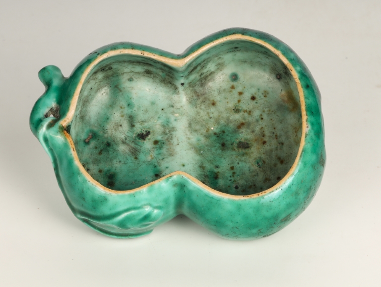 Green Glazed Gourd-Shaped Brush Washer, Qing Dynasty