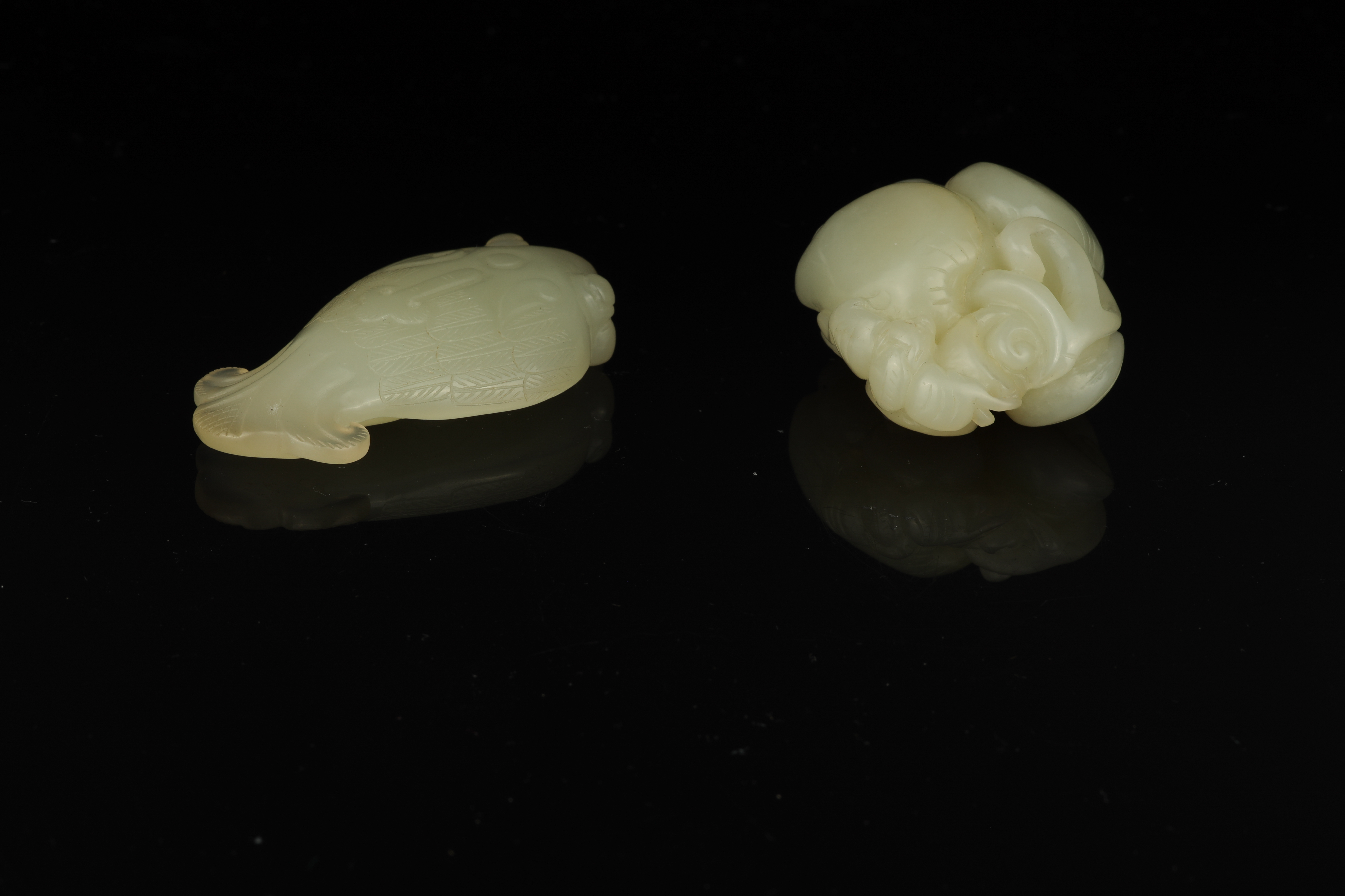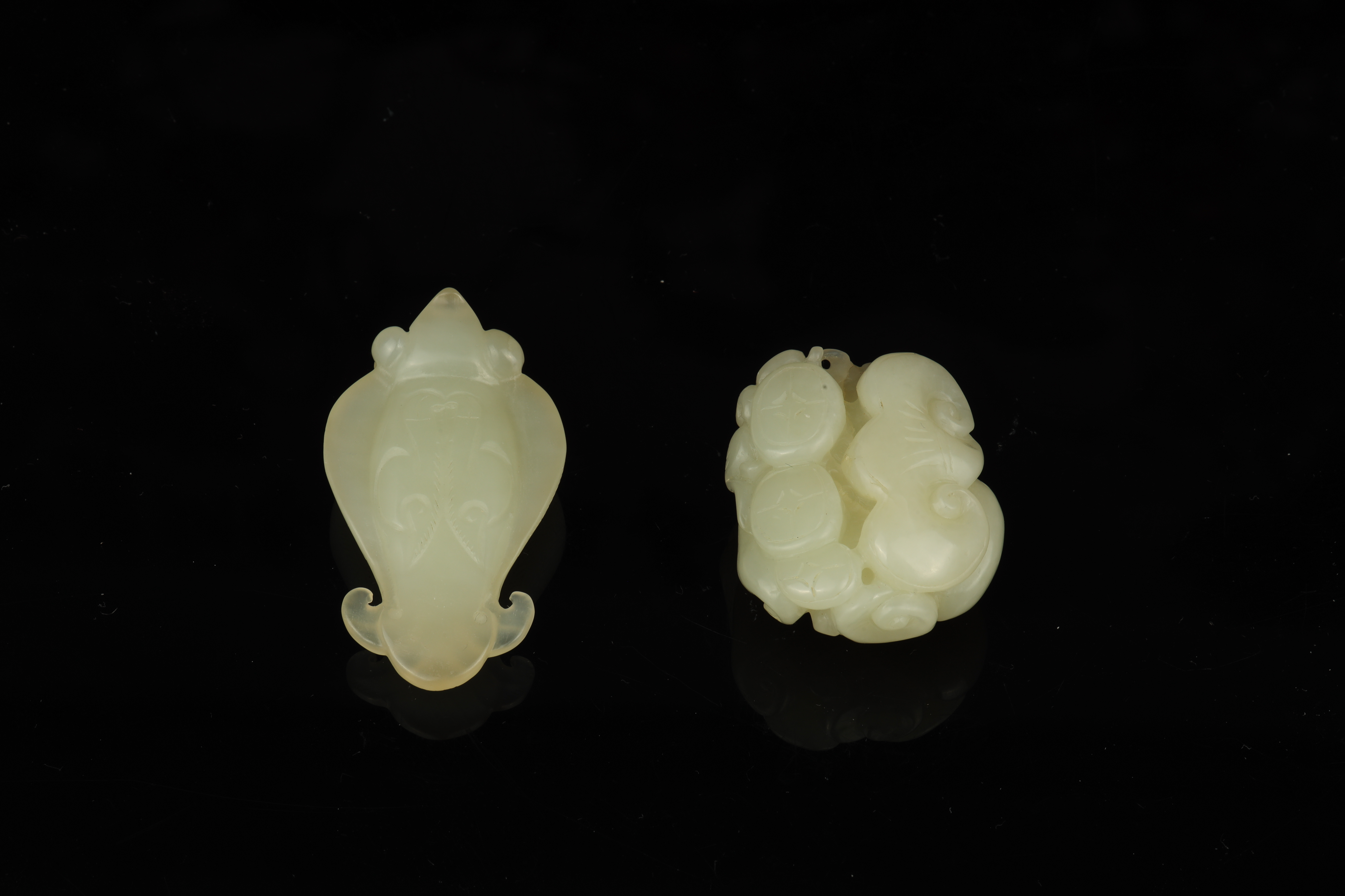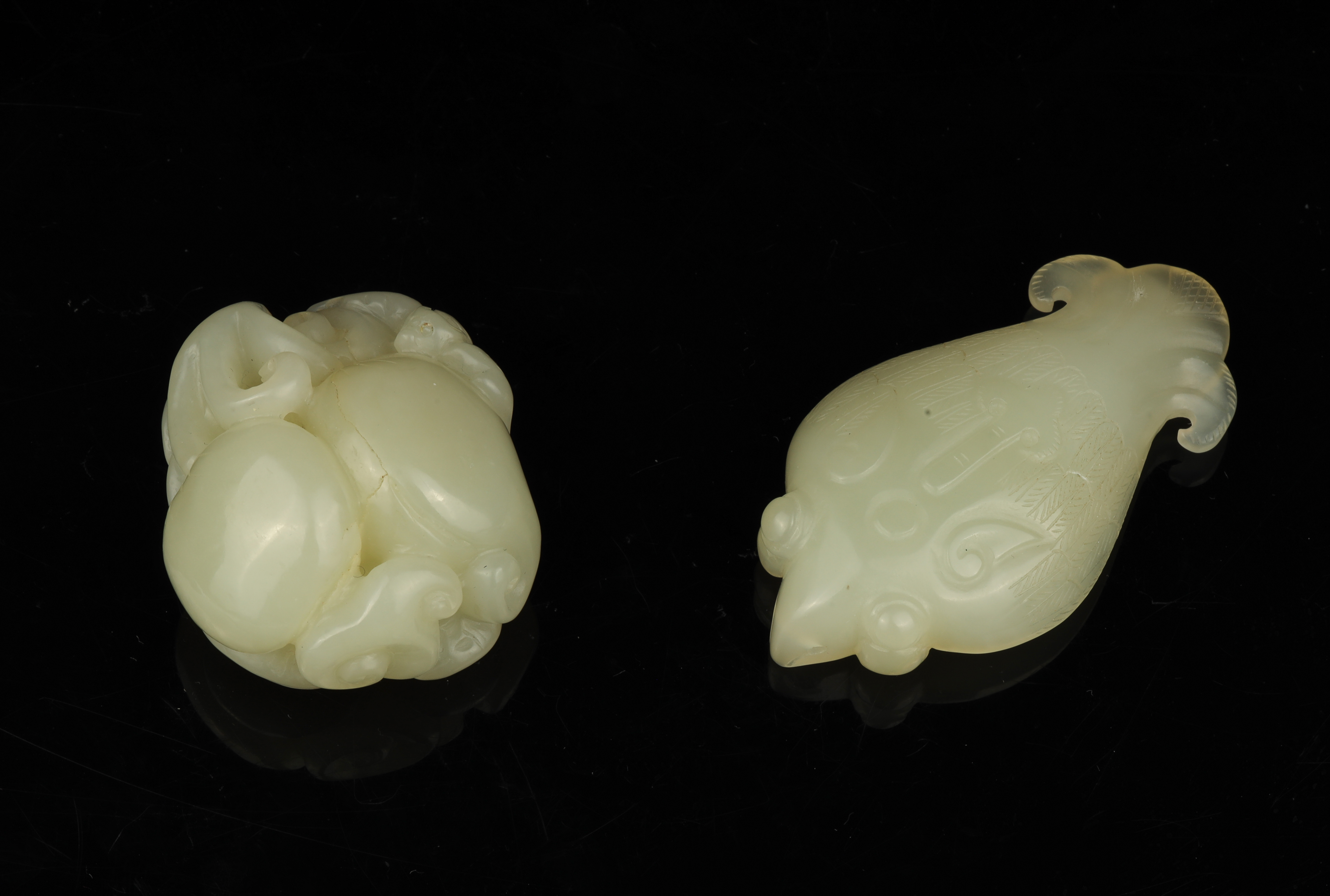 2 Pieces of Blue and White Jade Carving Ruyi Facai& Niannian Youyu Hanging Tag