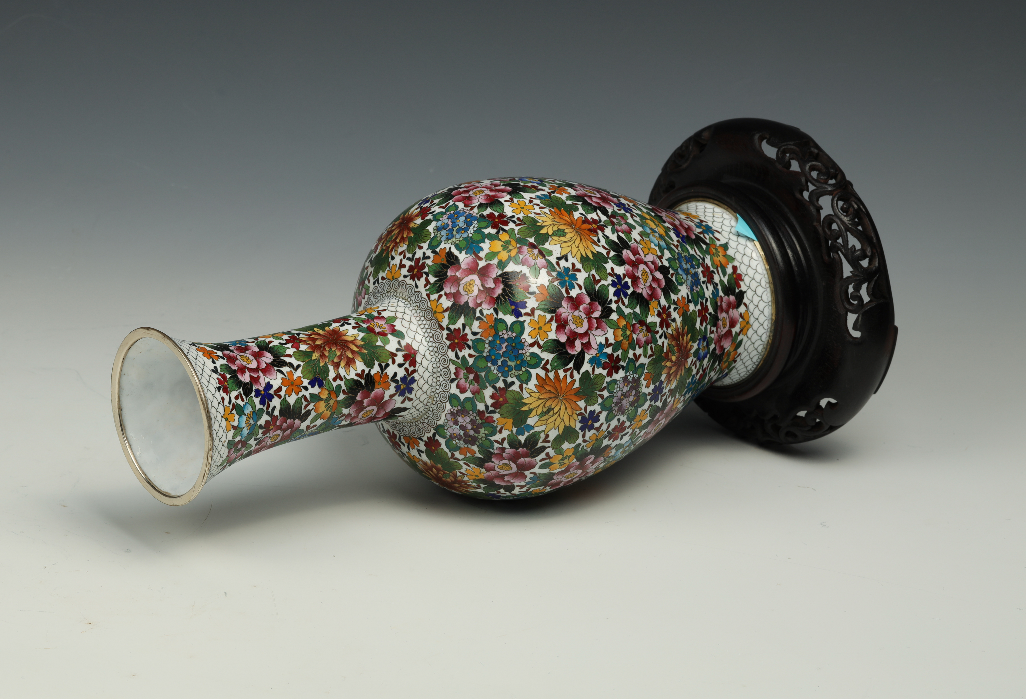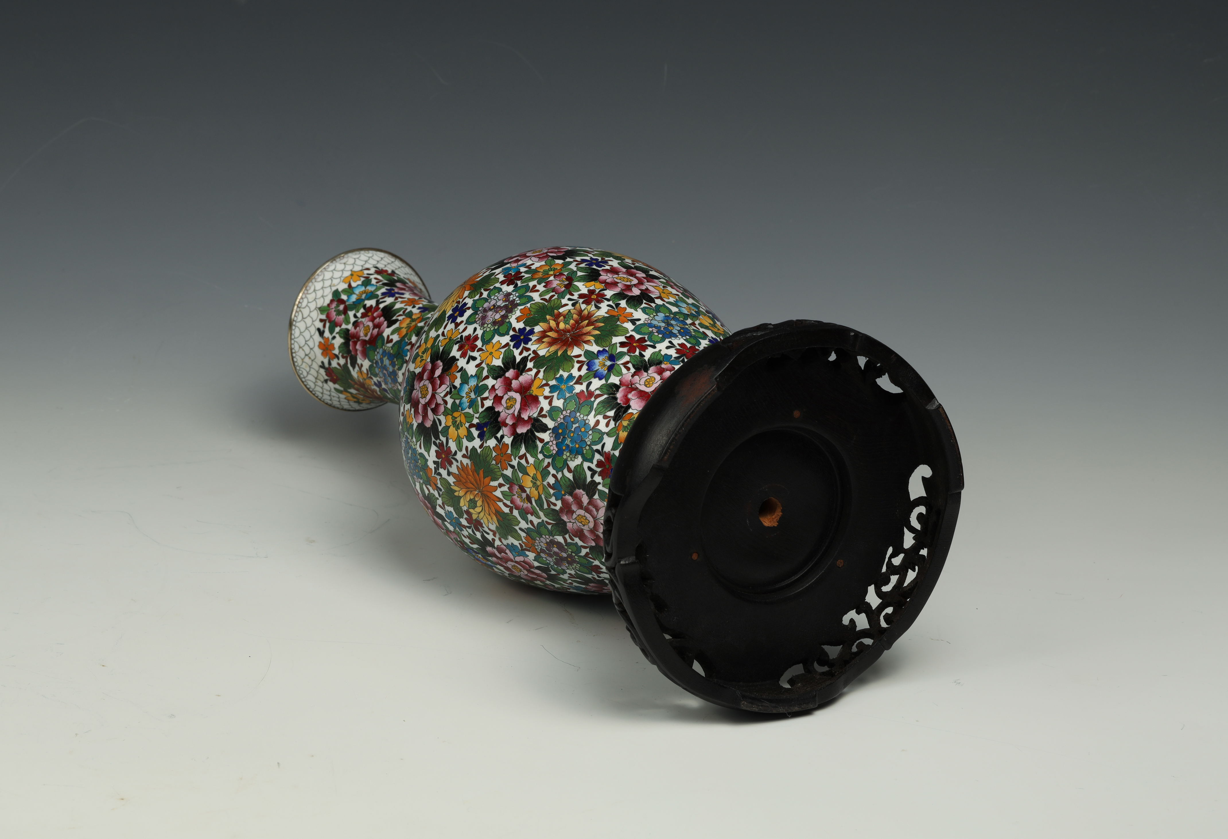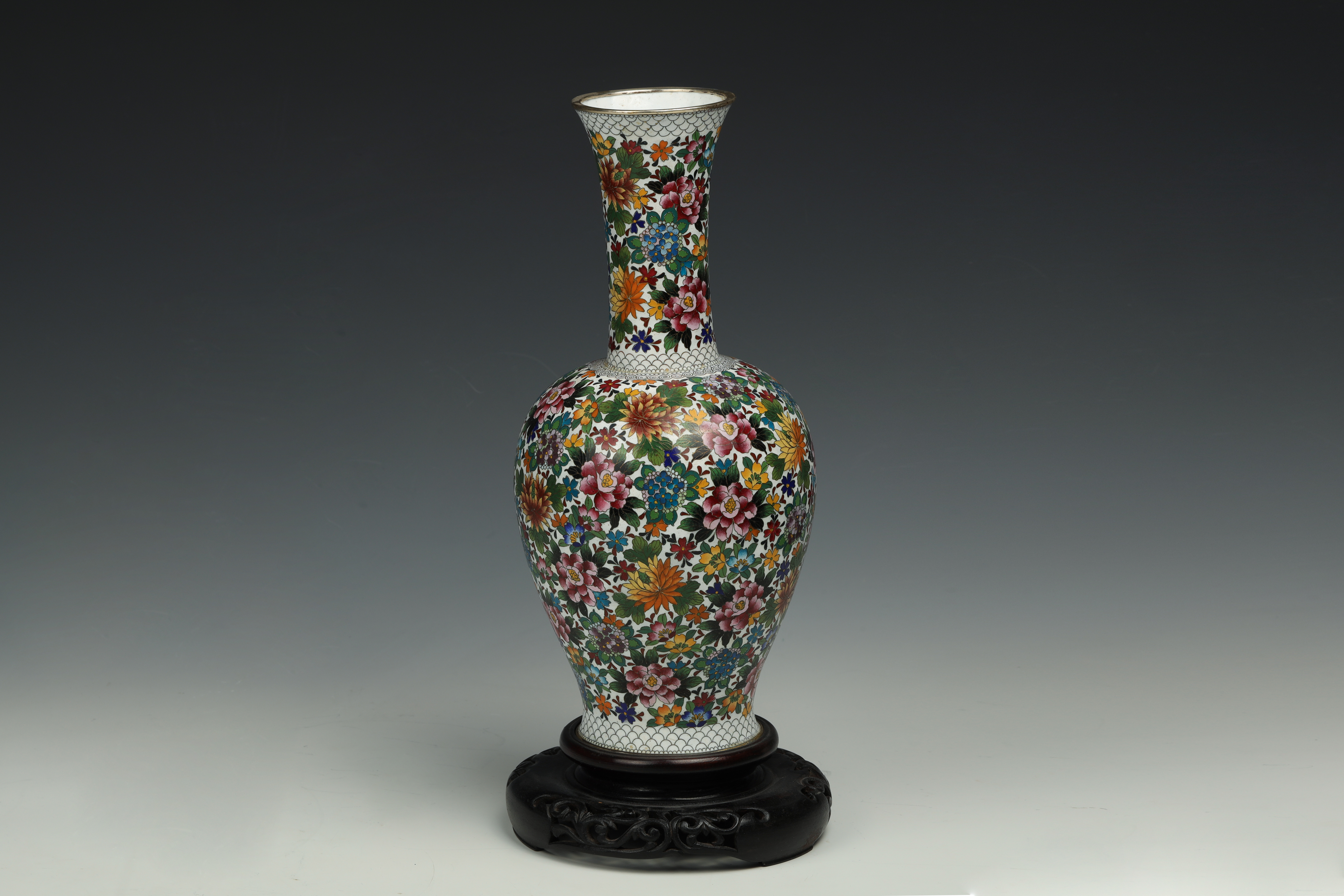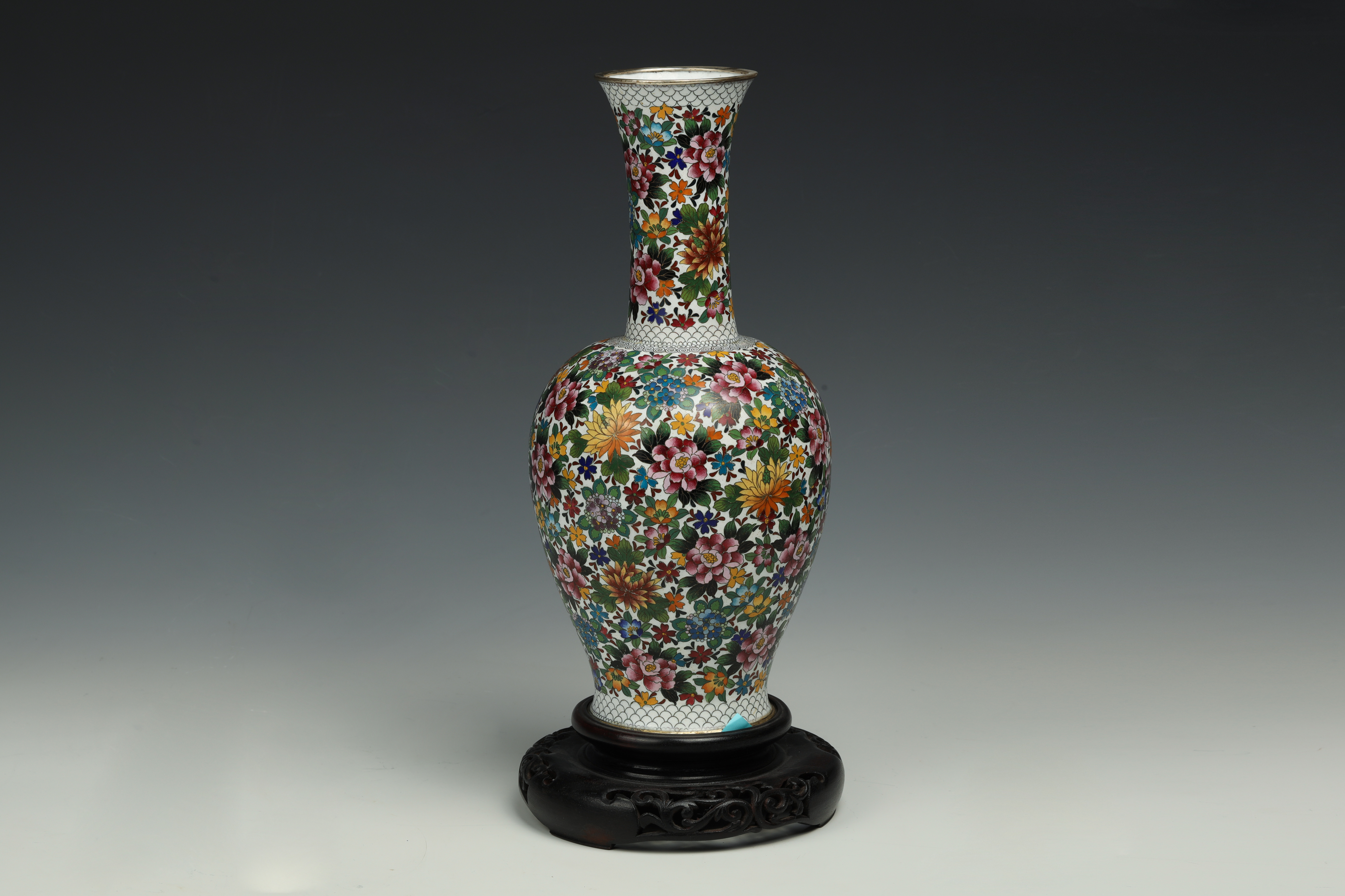 20世纪铜胎画珐琅百花满园图瓶带座(有打孔