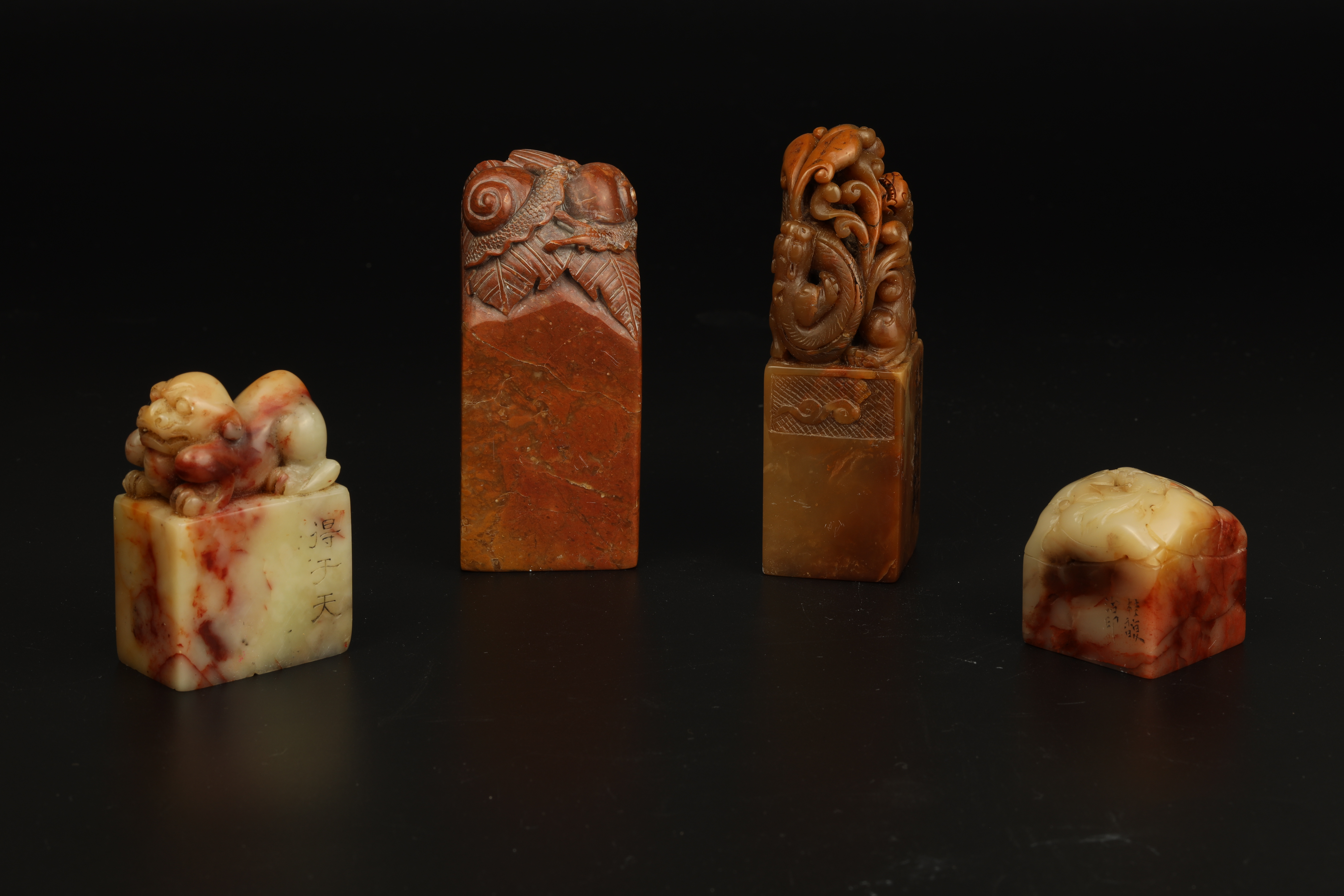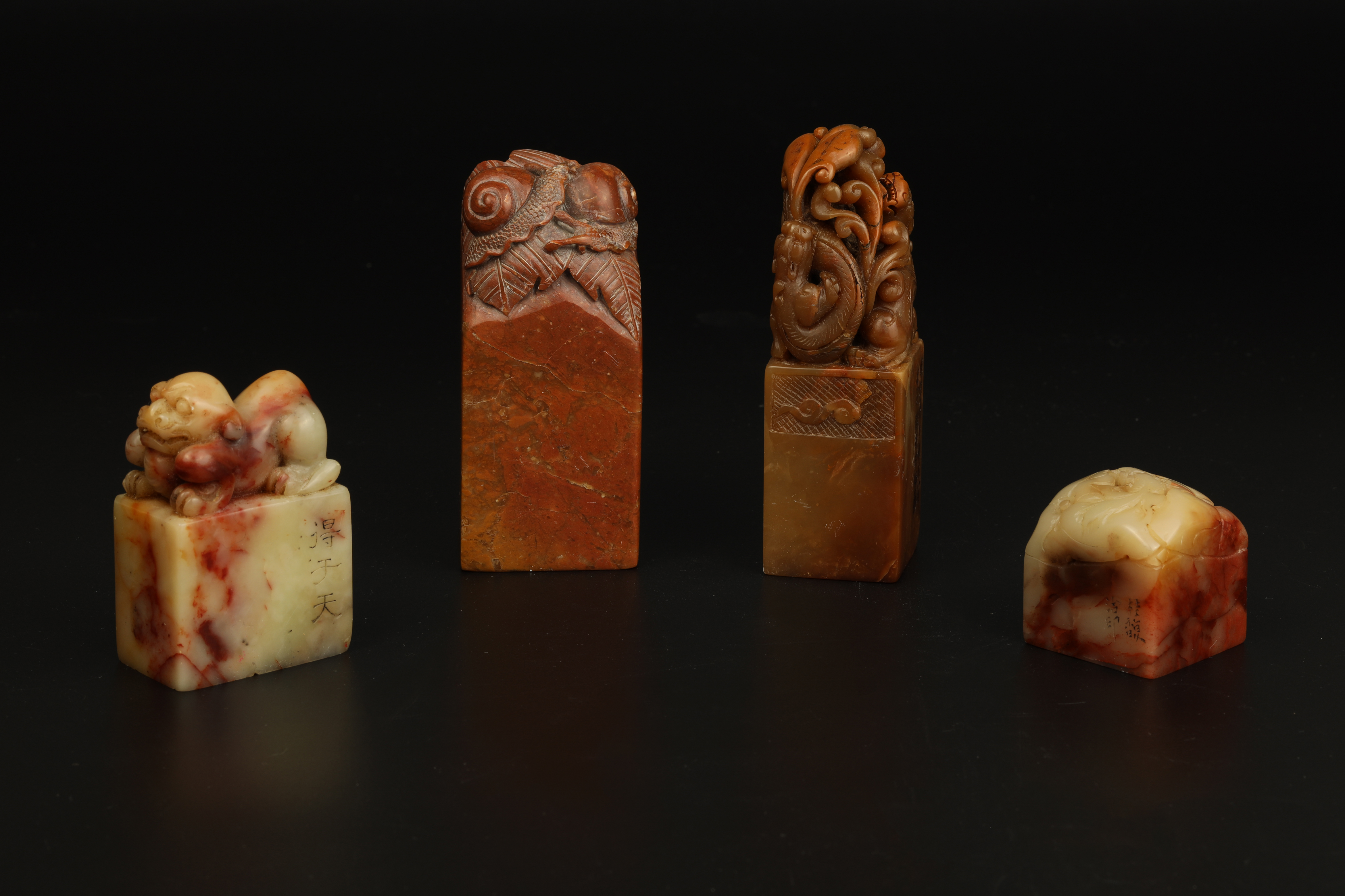 Four pieces of Shoushan stone seals (1) one of Hu Zhengyan’s style (2) one of Gui Fuzhi’s style (3) one of “Ling” style (4) one of “Wu Dacheng” style