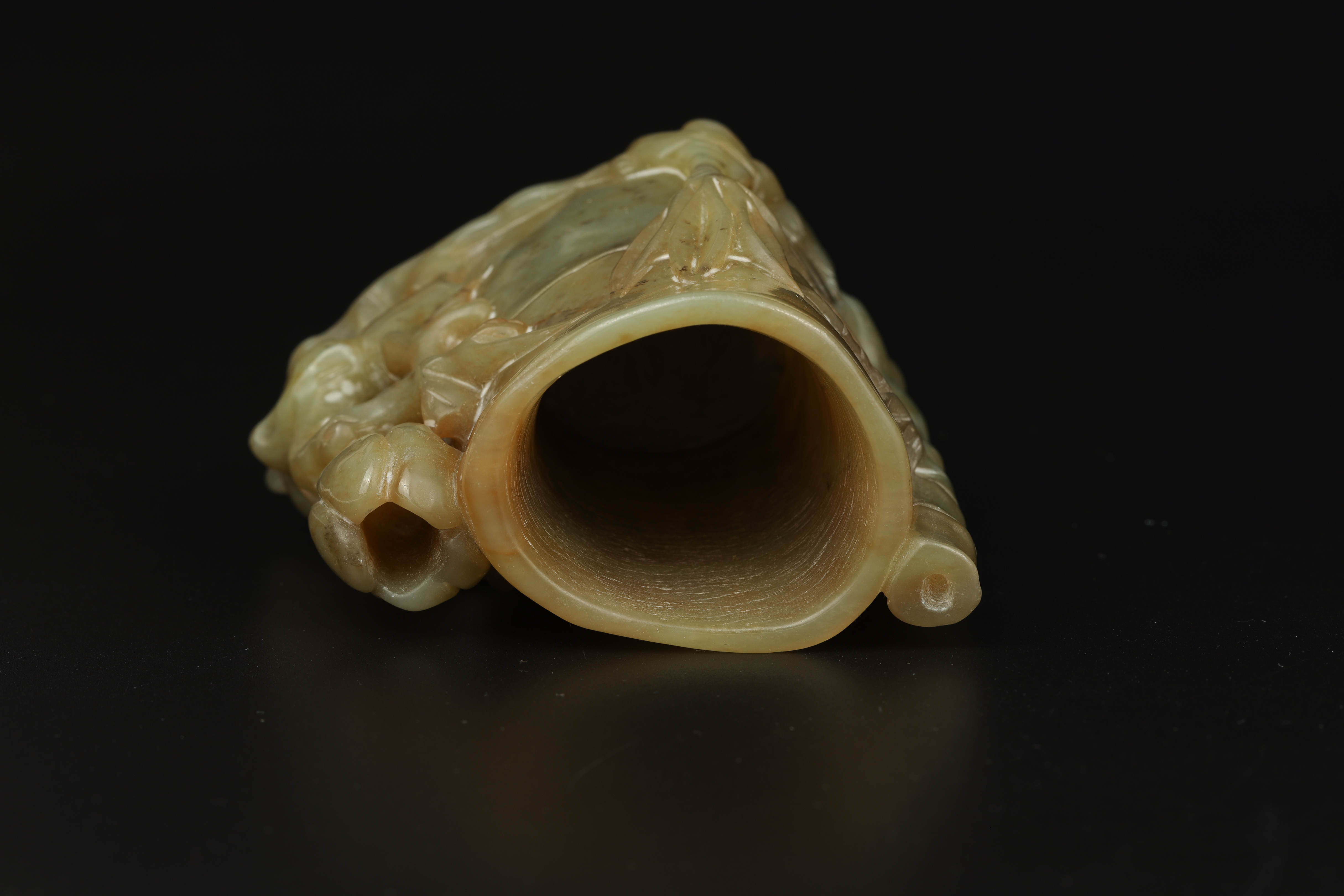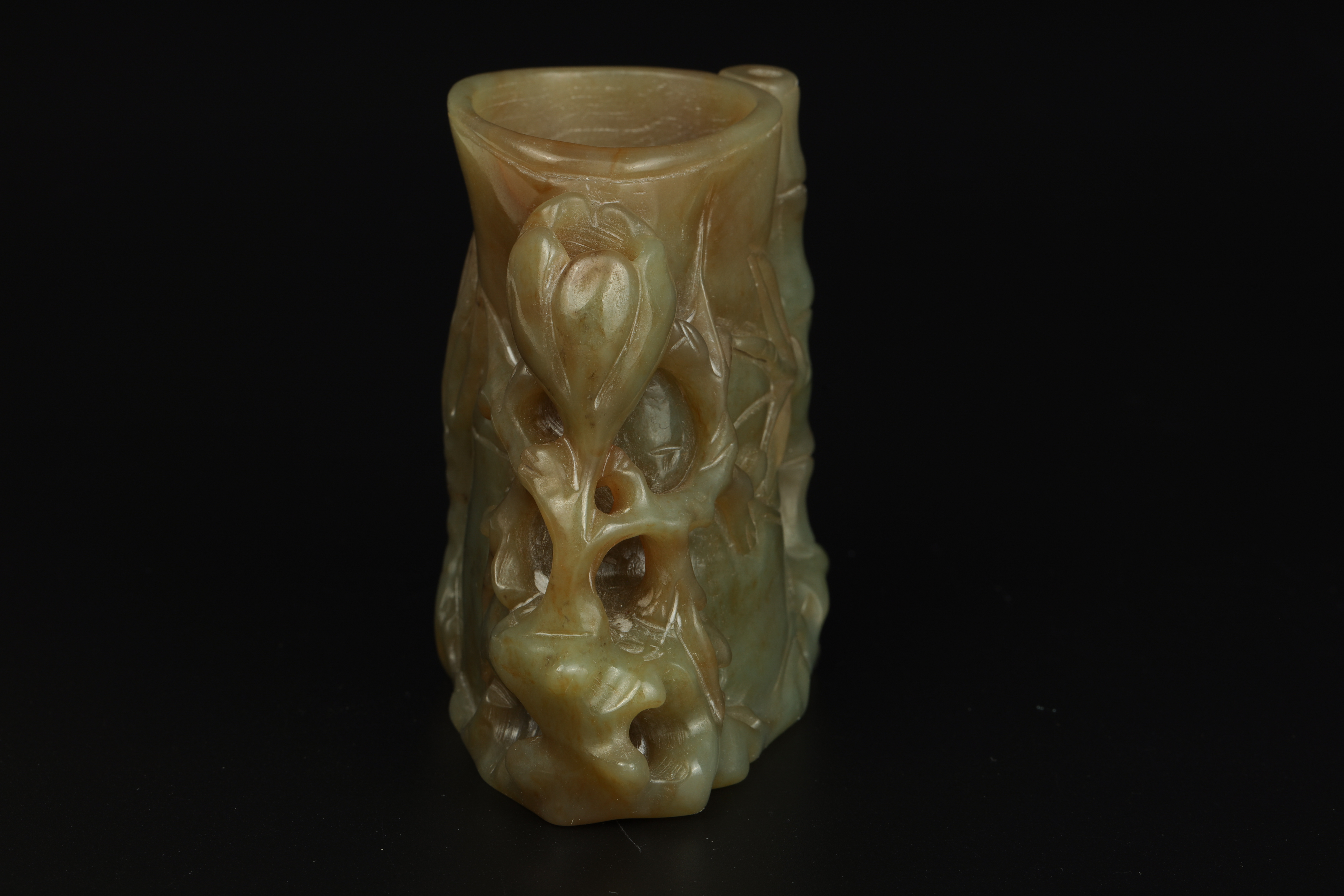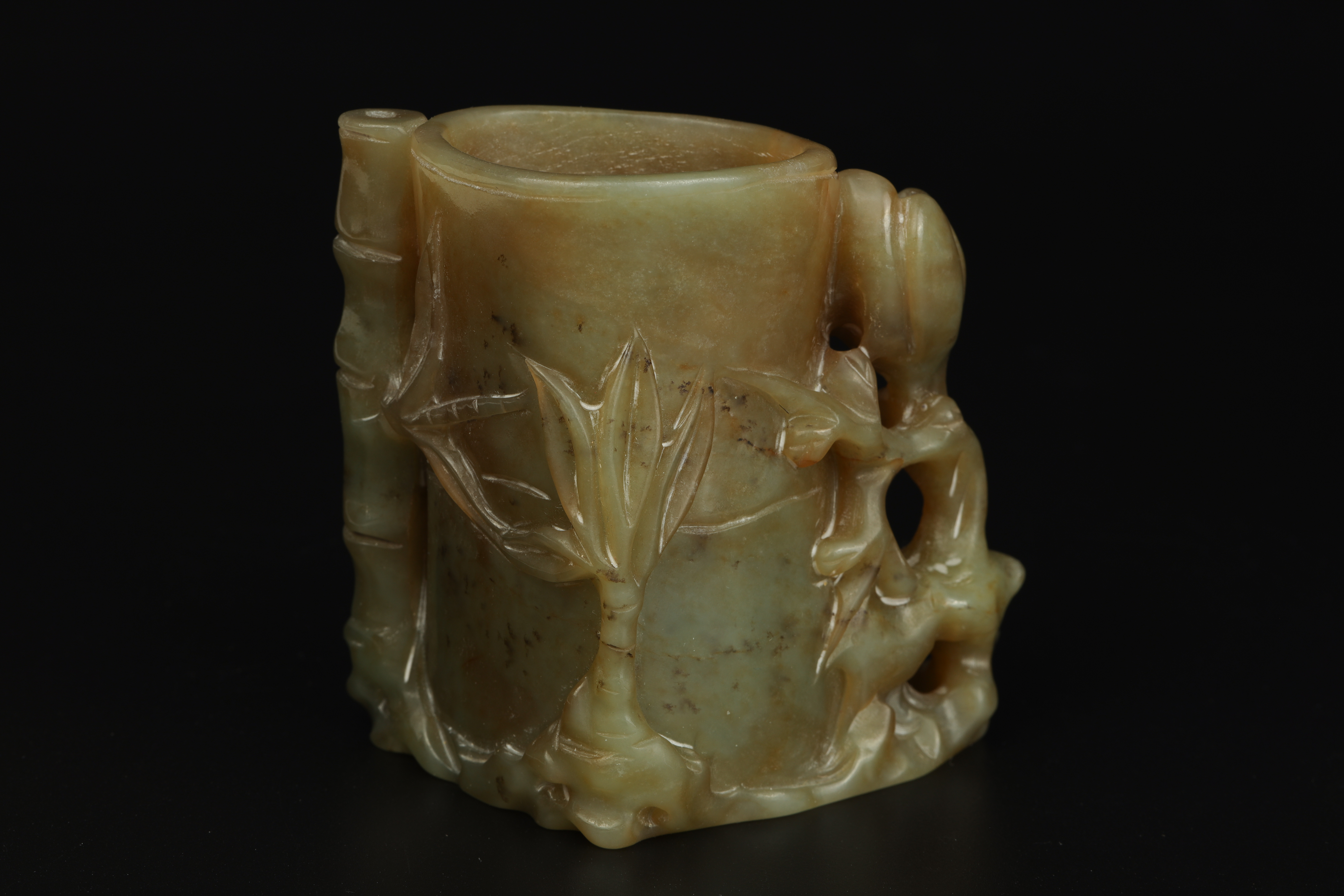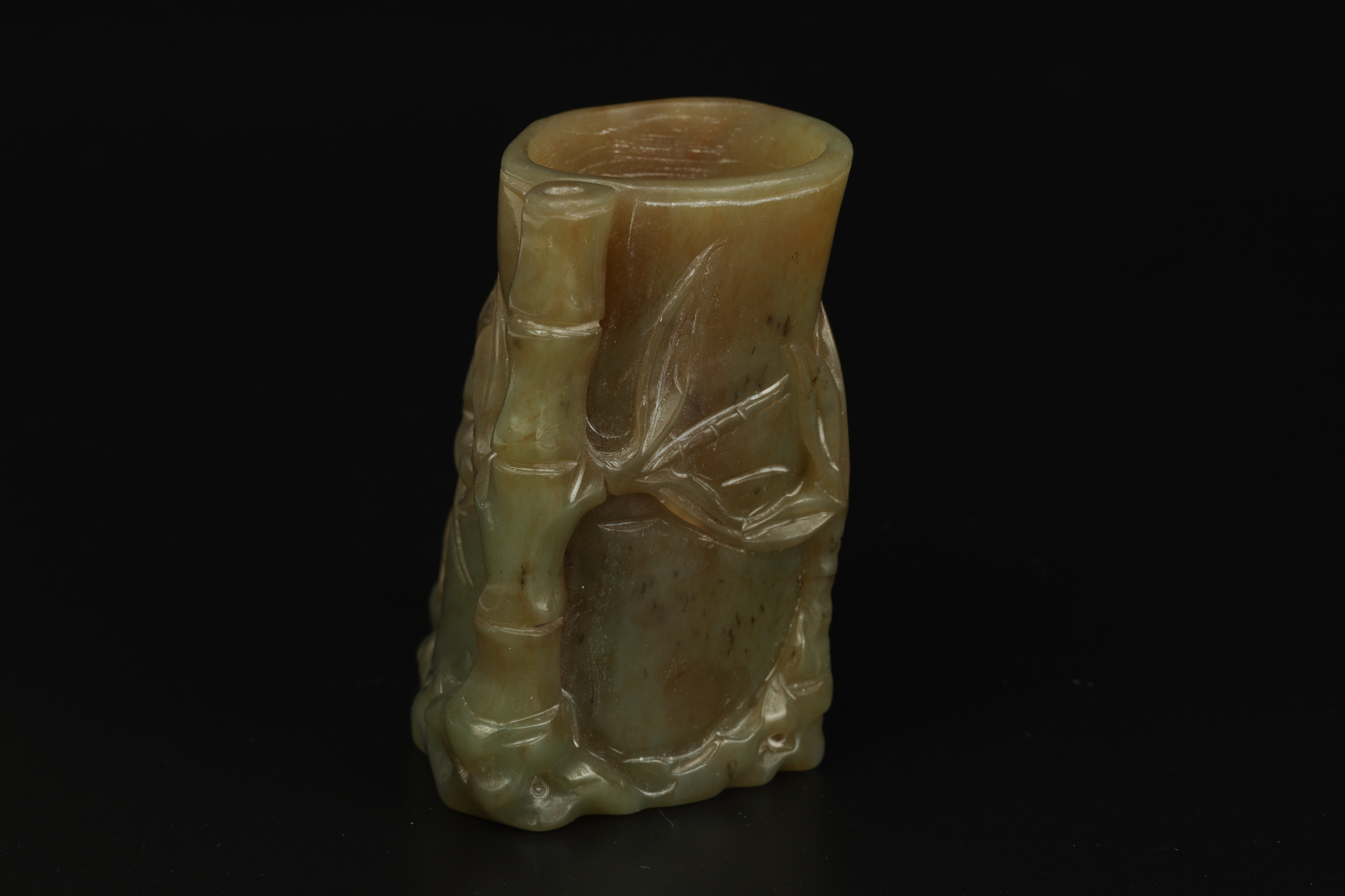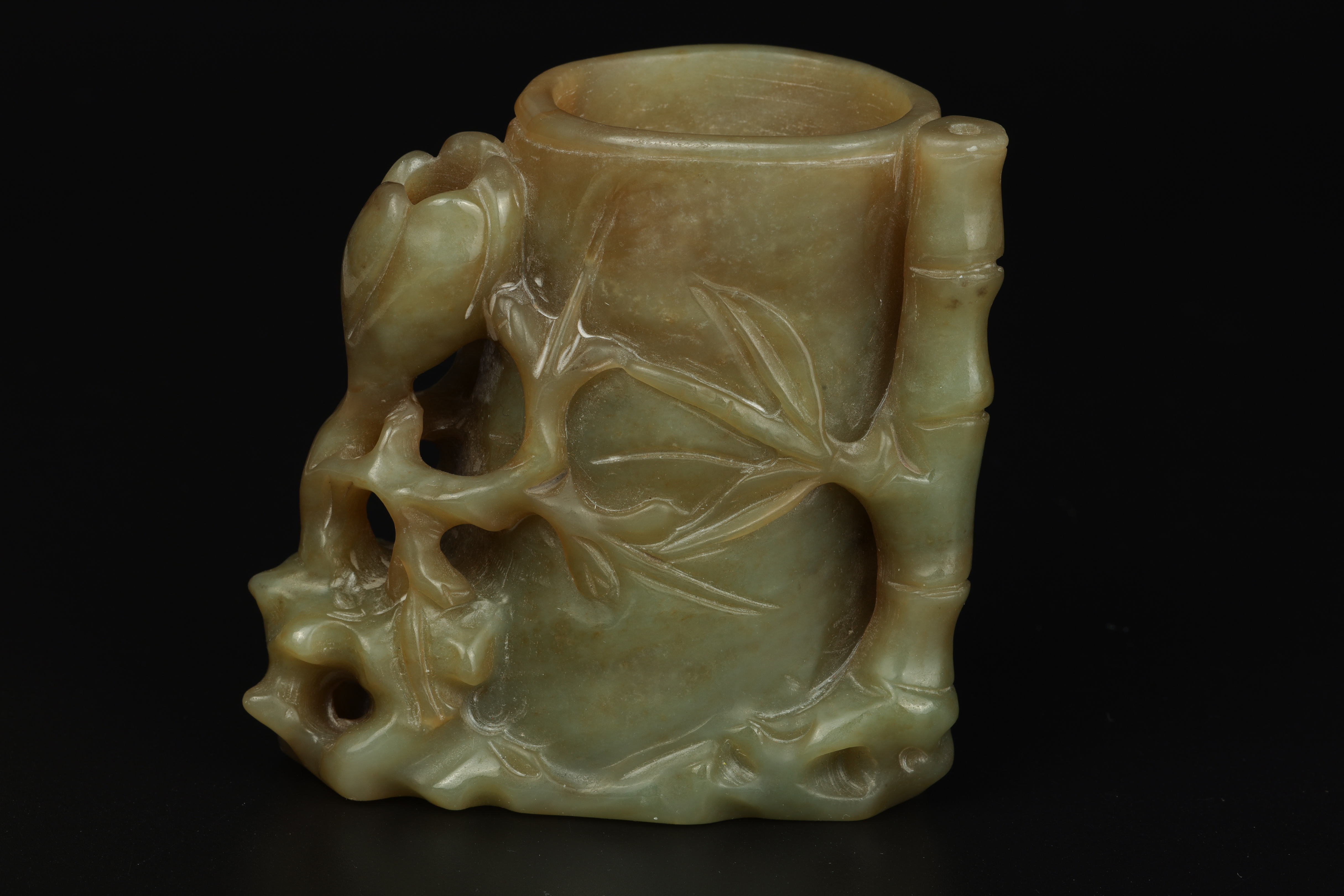 Dimensions: 3 3/8″ (8.5cm) H 玉雕岁寒三友笔筒