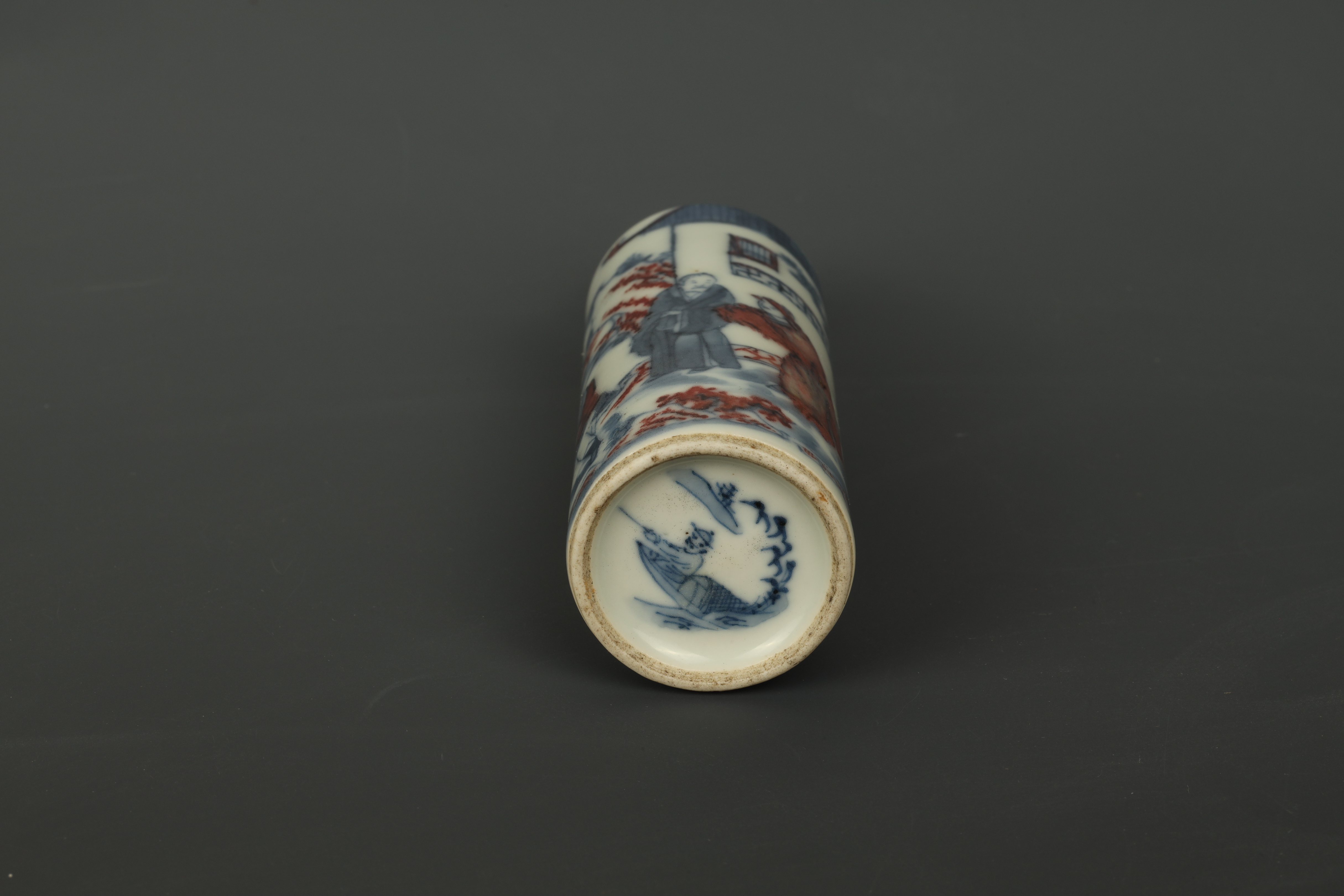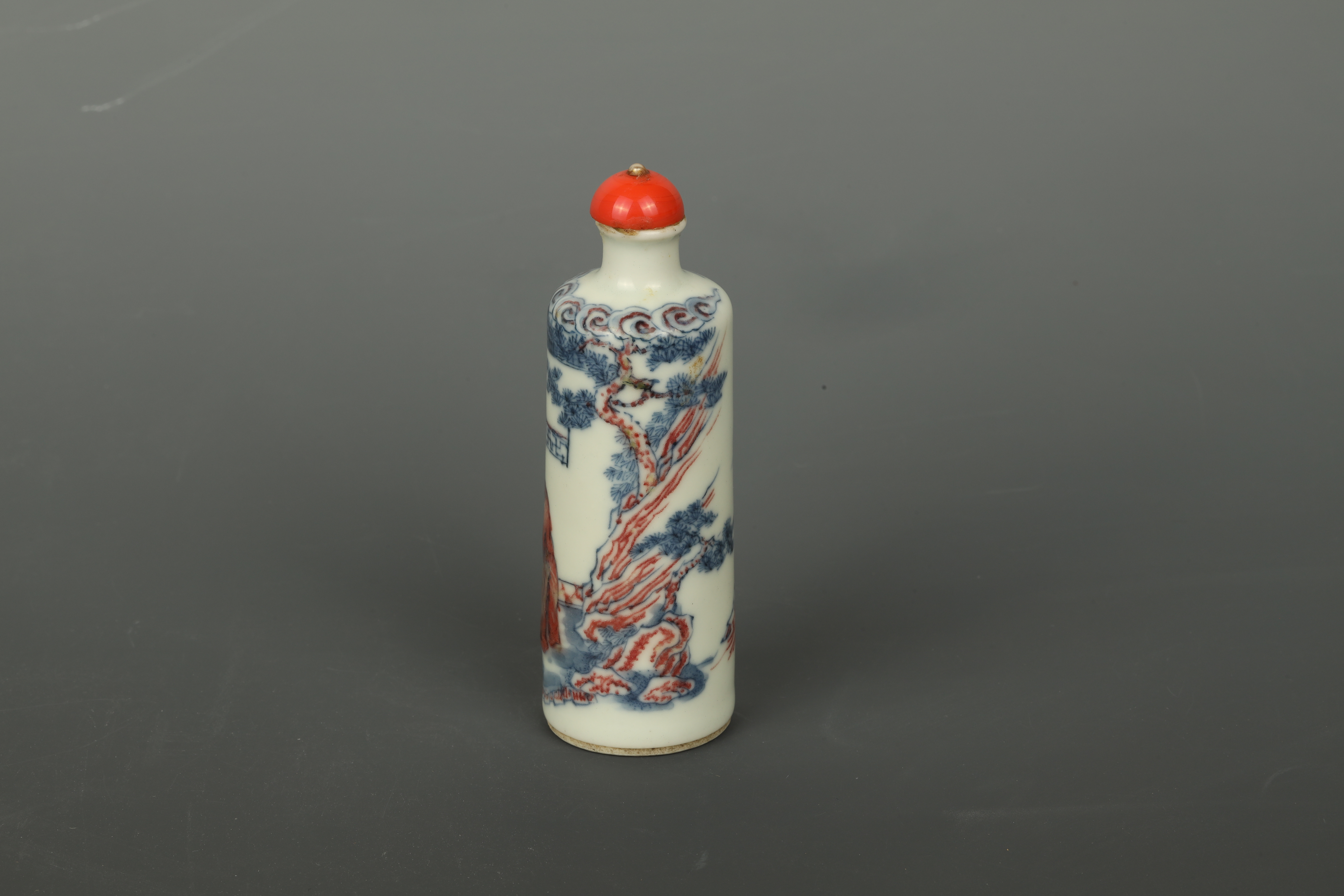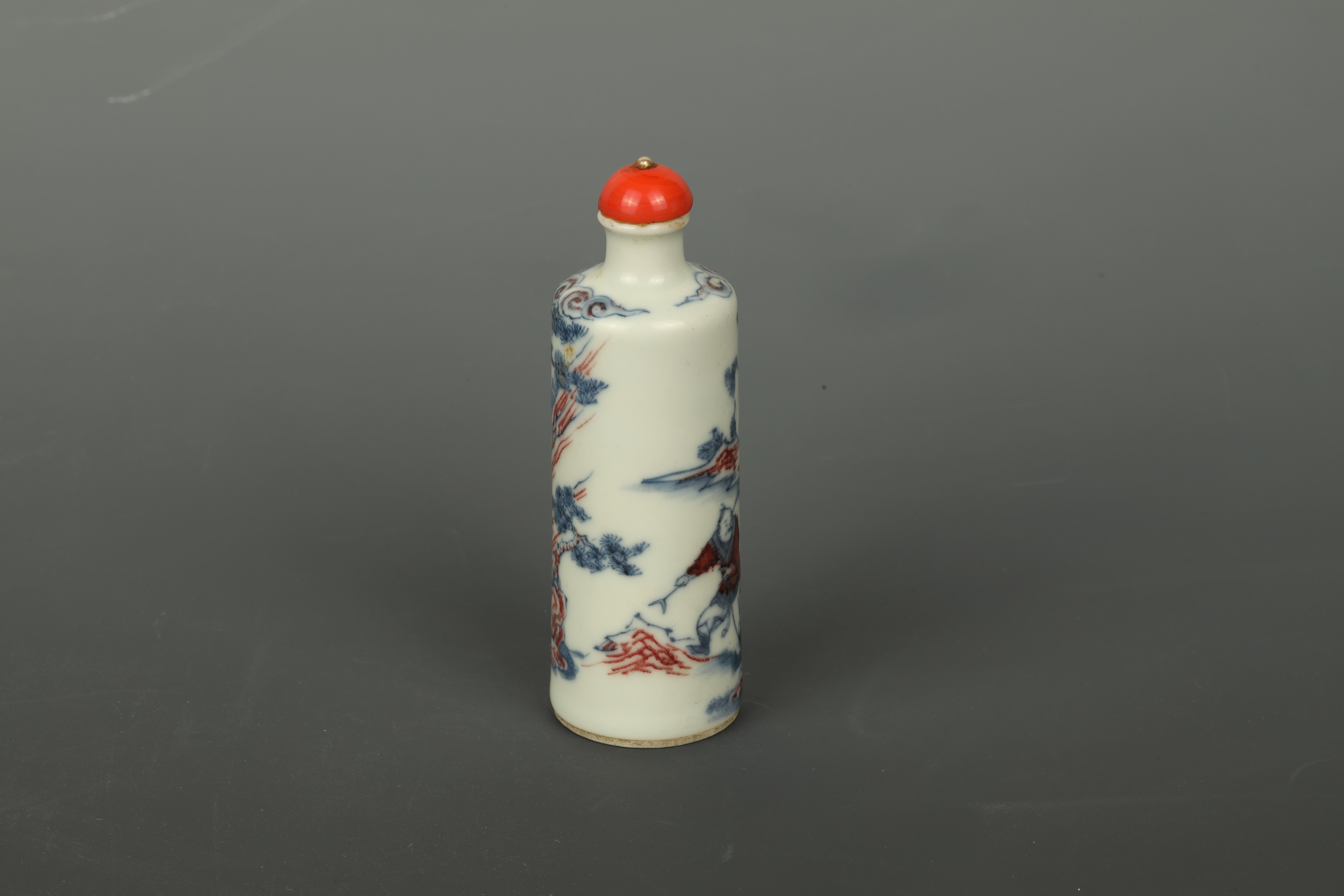 Qing Dynasty blue and white glaze red character story snuff bottle