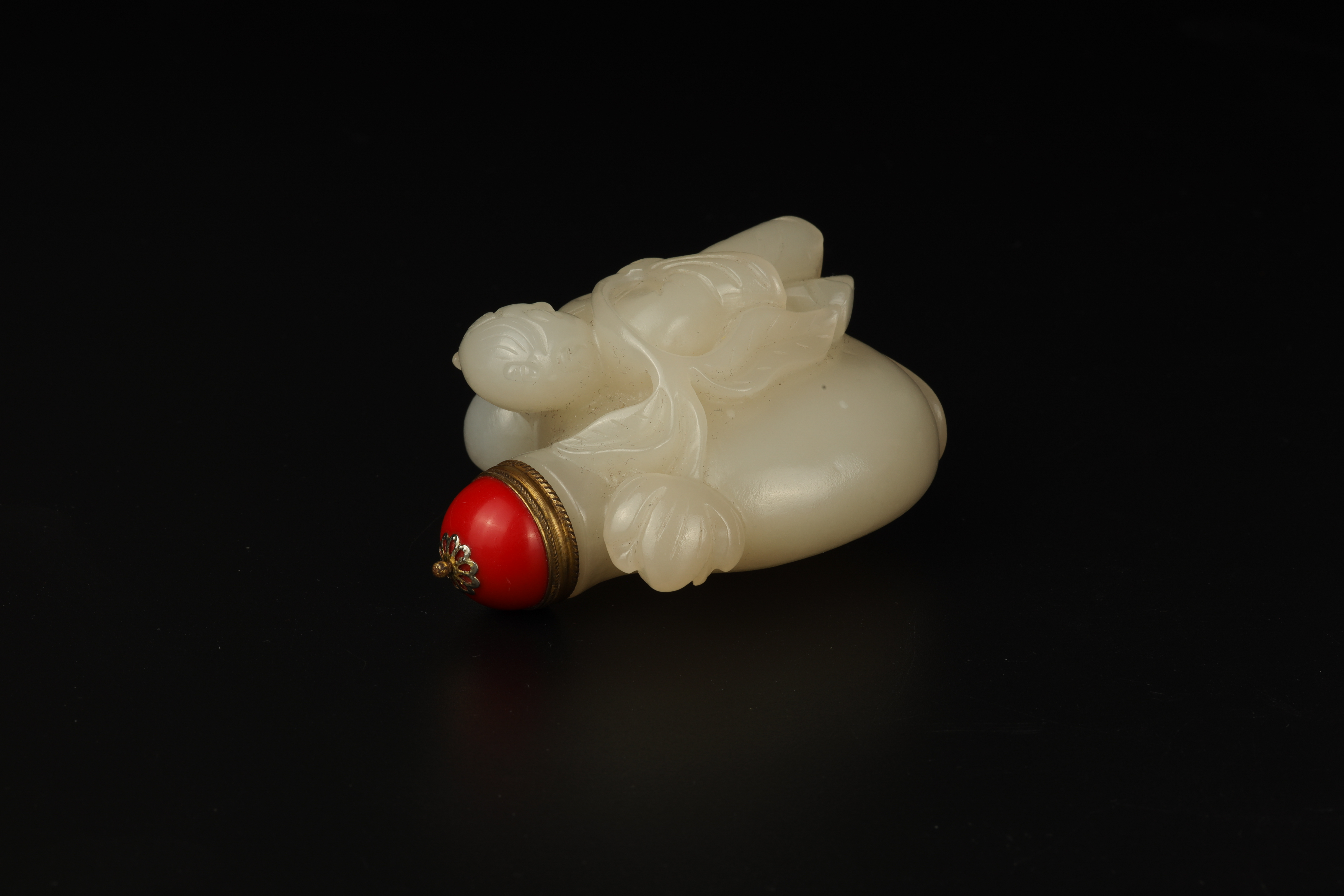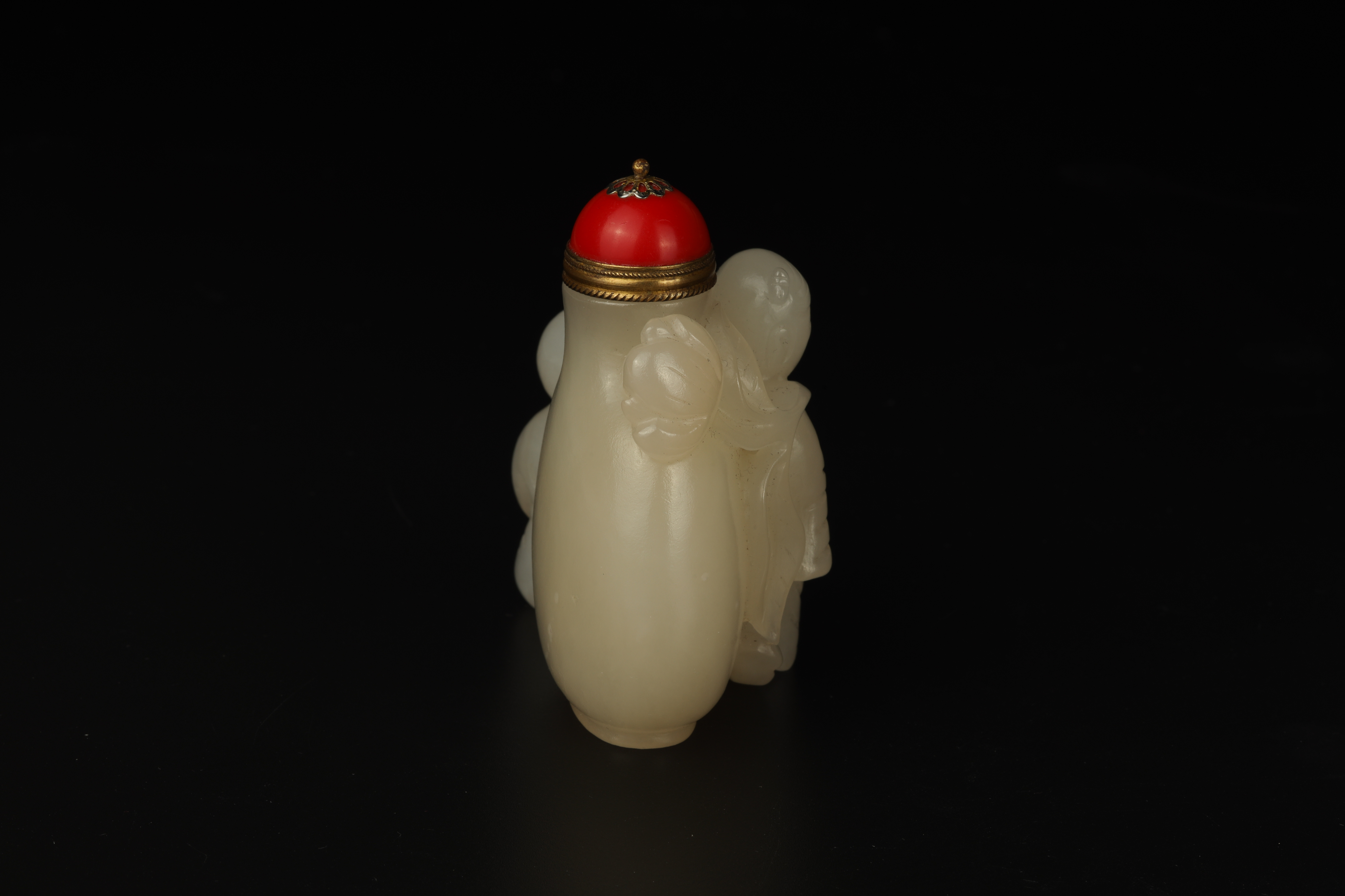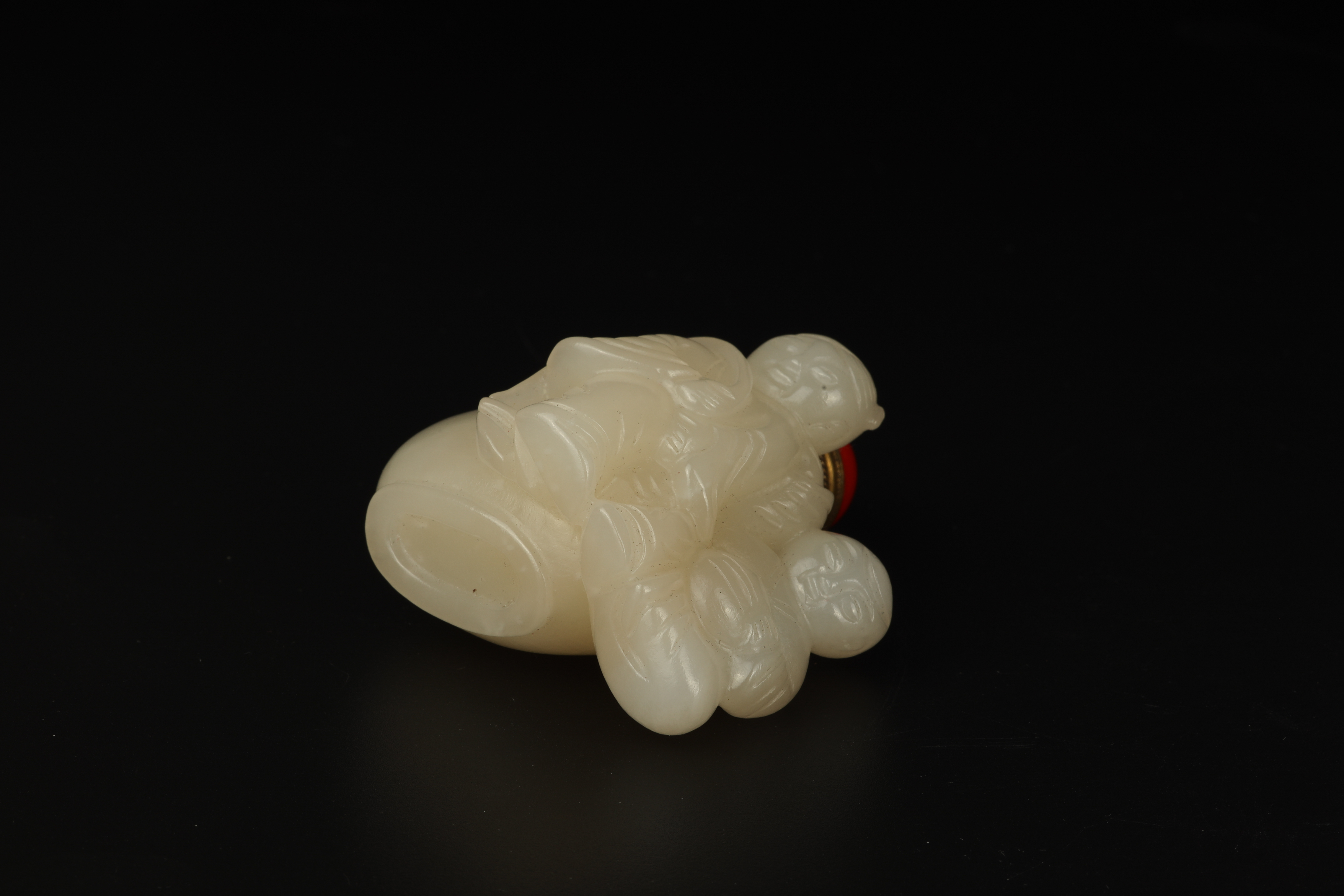 Dimensions: 3″ (7.5cm) H 白玉雕双童子鼻烟壶